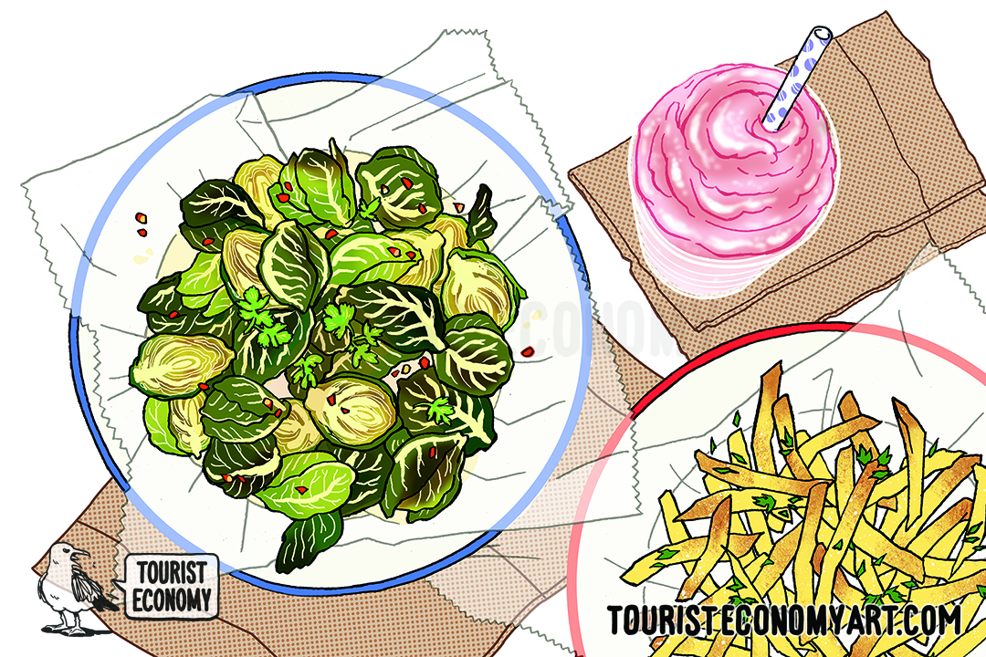 Brussels sprouts and fries